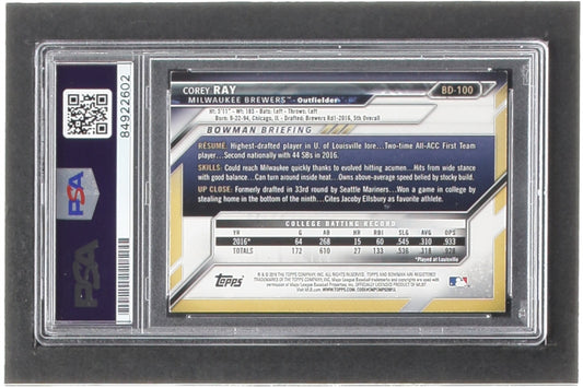Corey Ray Signed 2016 Bowman Draft #BD100 RC (PSA) - Rookie Card