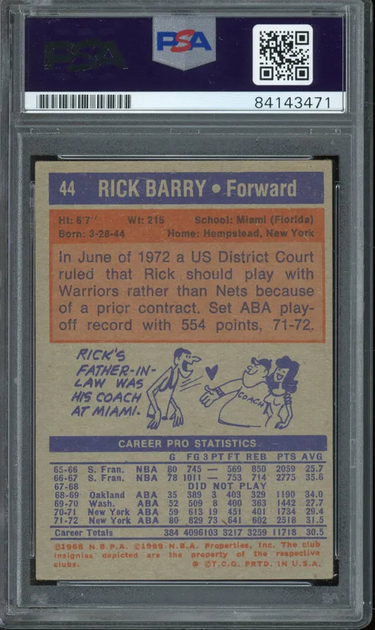 Rick Barry “1975 NBA Champ, TOP 50, HOF 1987” Signed 1972 Topps Card #44 - PSA/DNA