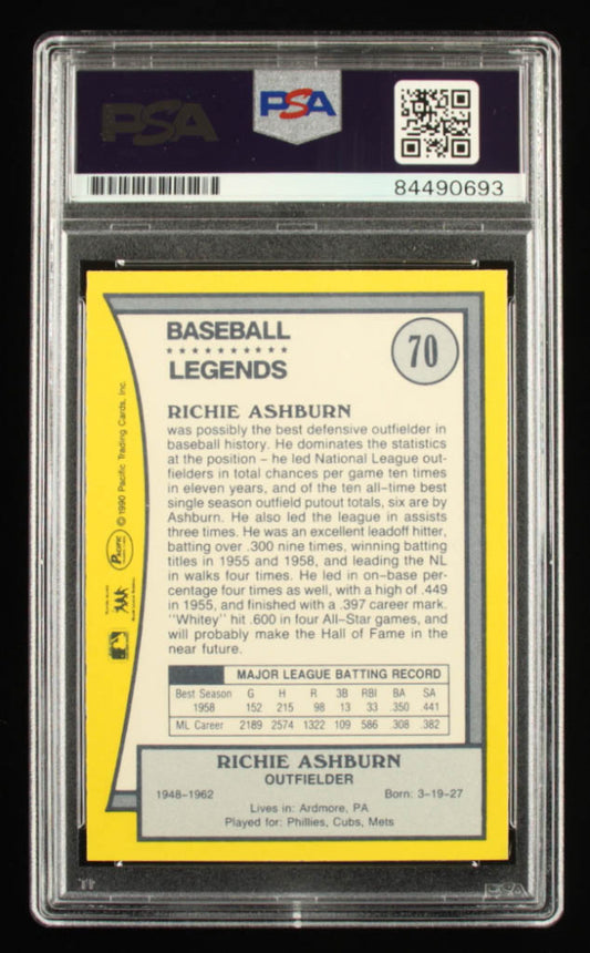 Richie Ashburn Signed 1988 Pacific Legends I #8 Inscribed "HOF '95" - Autograph Graded PSA 10