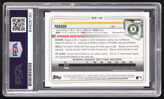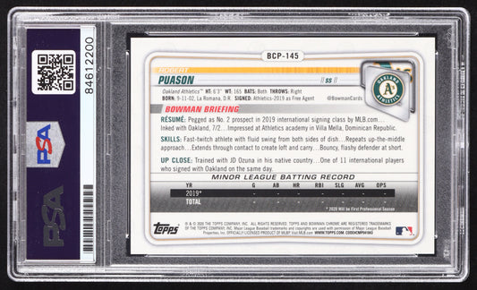 Robert Puason Signed 2020 Bowman Chrome Prospects #BCP145 RC (PSA) Auto PSA 10 - Rookie Card
