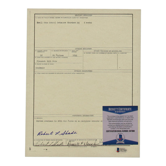 Robert Shade Signed (Beckett) 8.5 x 11 WWII Document Copy