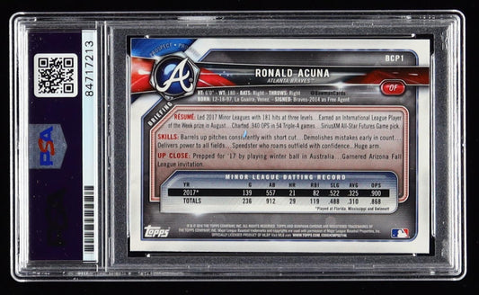 Ronald Acuna Jr. Signed 2018 Bowman Chrome Prospects #BCP1 RC (PSA | Autograph Graded PSA 10) - Rookie Card