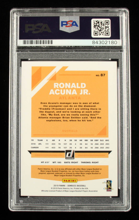 Ronald Acuna Jr. Signed 2019 Donruss #87 - Autograph Graded PSA 10