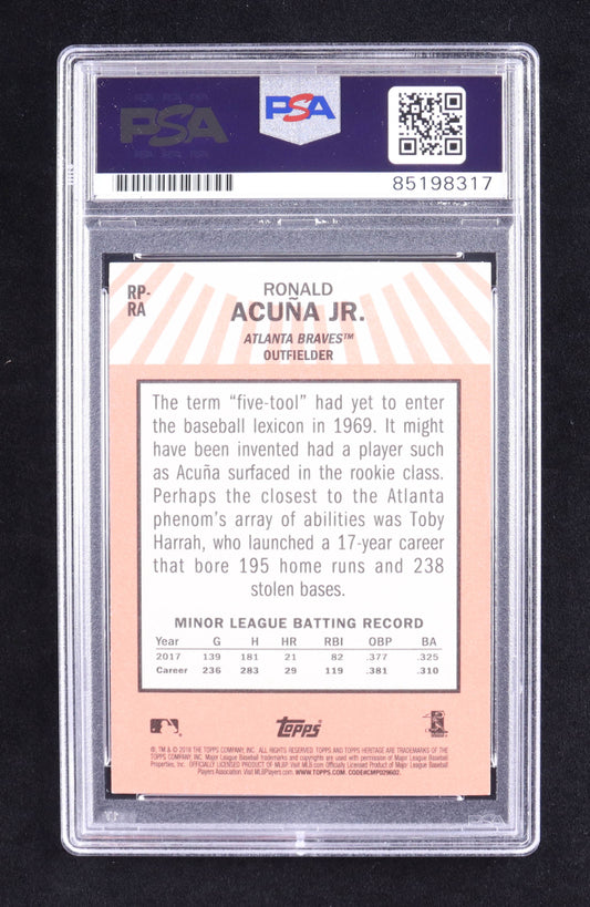 Ronald Acuna Jr. Signed 2018 Topps Heritage Rookie Performers #RPRA RC (PSA | Auto 10) Rookie Card