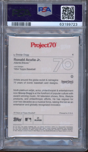 Ronald Acuna Jr. Signed 2021 Topps Project 70 Baseball Card #4 - Card and Auto Both Graded Gem Mint 10! (PSA)