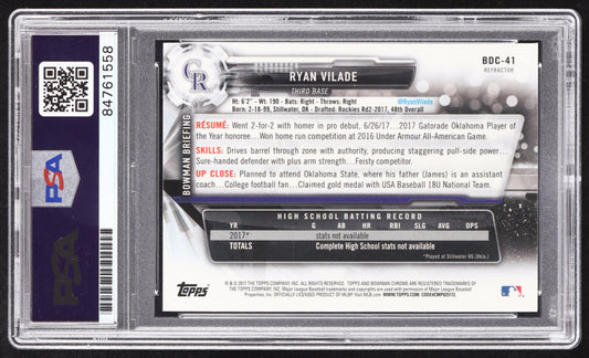 Ryan Vilade Signed 2017 Bowman Chrome Draft Refractors #BDC41 RC (PSA) Rookie Card