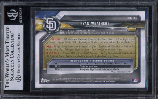 Ryan Weathers Signed 2018 Bowman Draft 1st Bowman #BD182 (BAS Authentic) - Rookie Card
