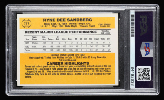 Ryne Sandberg Signed 1983 Donruss #277 RC (PSA) Rookie Card | Autograph Graded (PSA) 10
