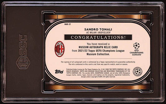 Sandro Tonali 2021-22 Topps Museum Collection UEFA Champions League Autograph Relics #MARST #92/250 (SGC 9 | Autograph Graded SGC 10) Serially Numbered #92 / 250