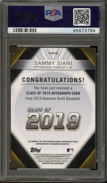 Sammy Siani 2019 Bowman Draft Class of '19 Autographs #SS - Serially Numbered #172 of 250 - Graded NM-MT 8 (PSA) - Rookie Card