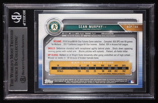 Sean Murphy Signed 2019 Bowman Chrome Prospects Speckle Refractors #BCP144 #003/299 RC (BGS | Auto Grade BGS Authentic) Autograph Graded BGS Authentic | Rookie Card | Serially Numbered #003 / 299