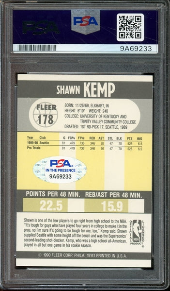 Shawn Kemp Signed 1990 Fleer #178- Auto Graded Gem Mint 10 - PSA/DNA ITP - Rookie Card