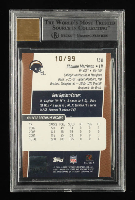 Shawne Merriman 2005 Bowman's Best Bronze AU #156 Serially Numbered #10 / 99 - Card Grade (BGS 8.5) / Autograph Graded Beckett (BGS) 10 - Rookie Card