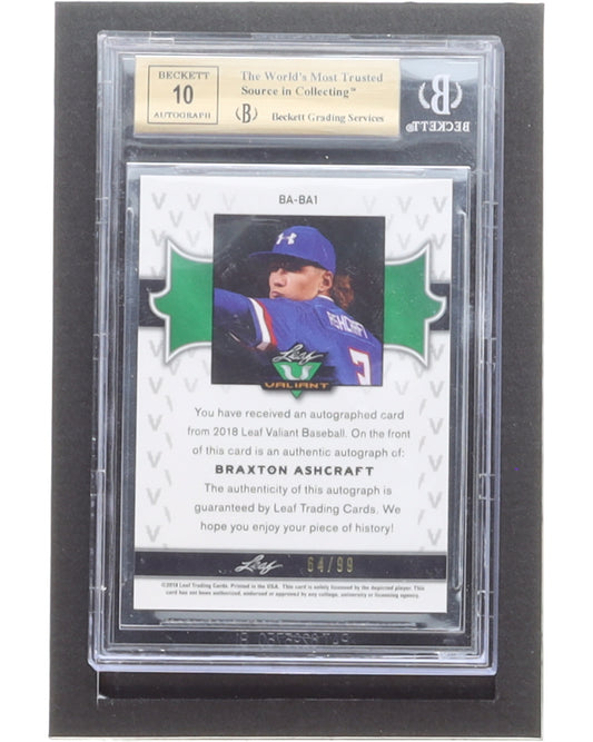 Braxton Ashcraft 2018 Leaf Valiant Green #BABA1 #64/99 (BGS) 10 - Autograph Graded Beckett (BGS) 10 - Rookie Card