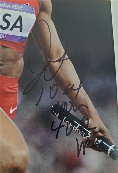 Carmelita Jeter "10.64 100m 40.82 WR" Signed (Beckett Certified) 2012 Olympics 8x10 Photo