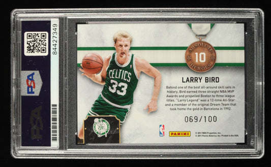 Larry Bird Signed 2010-11 Absolute Memorabilia Absolute Heroes Spectrum #10 Serially Numbered #69/100 - Autograph Graded PSA 9