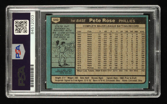 Pete Rose Signed 1980 Topps #540 Inscribed "4256" Autograph Graded PSA 10