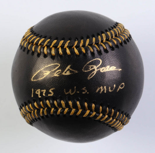 Pete Rose Signed OML Black Leather Baseball with Display Case Inscribed "1975 W.S. MVP" (PSA) Overall Grade 10 / Autograph Grade 10 / Baseball Grade 10