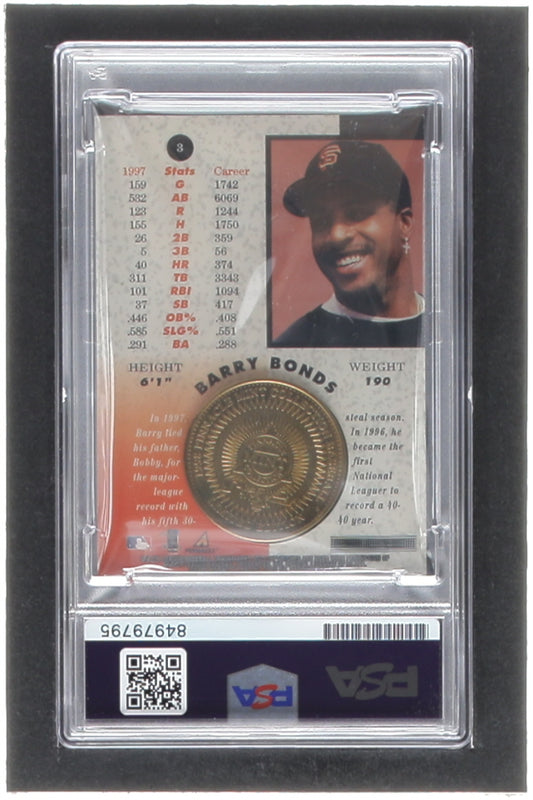 Barry Bonds Signed 1998 Pinnacle Mint Coins Brass #3 #209/300 (PSA | Auto 10) - Hand-Numbered #209 / 300