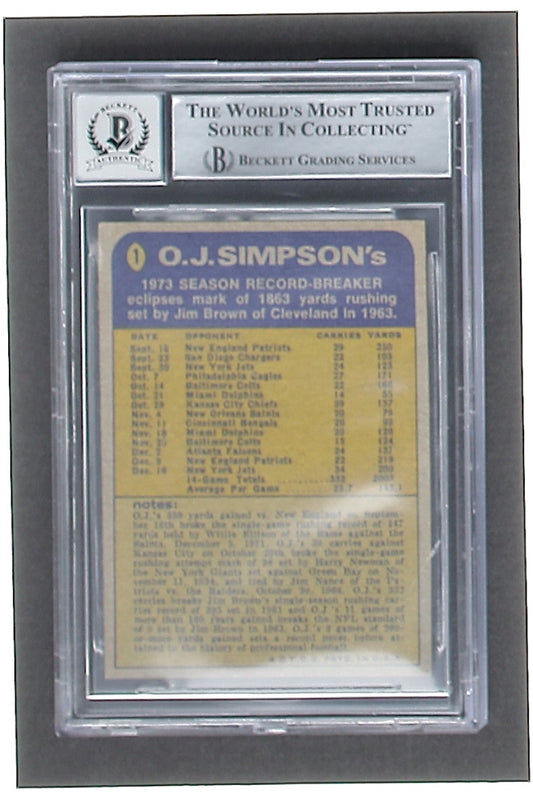 O.J. Simpson Signed 1974 Topps #1 RB - Autograph Graded Beckett (BGS) 10