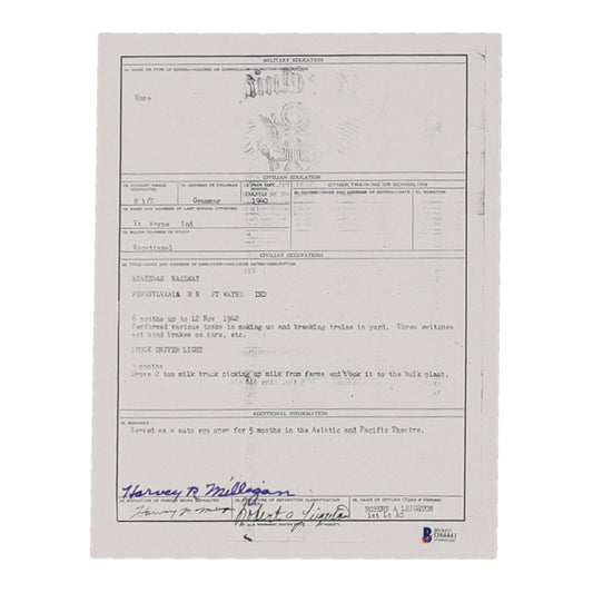 Harvey Milligan Signed 8.5x11 Document Copy (Beckett)
