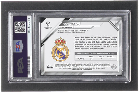 Luka Modric Signed 2021-22 Topps Chrome Sapphire UEFA Champions League #85 (PSA)