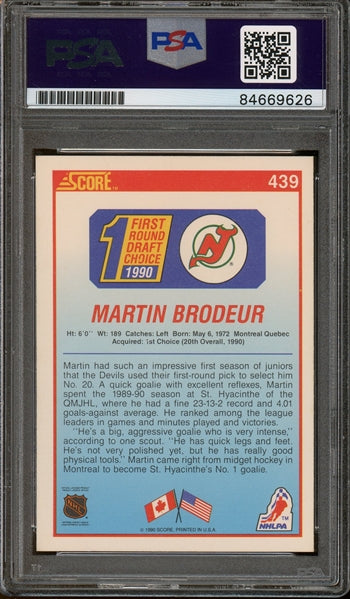 Martin Brodeur 1990 Signed Score #439- Auto Graded Gem Mint 10 (PSA) - Rookie Card