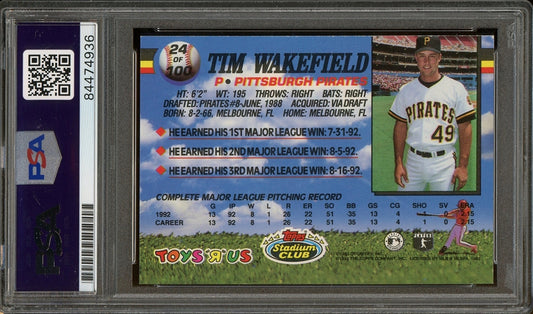 Tim Wakefield Signed 1993 Toys 'R' Us Rookie Star #24 - Auto Graded Gem Mint 10 (PSA/DNA Encapsulated) - Rookie Card