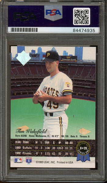 Tim Wakefield Signed 1993 Leaf Gold Leaf Rookies #8 - Auto Graded Gem Mint 10 (PSA/DNA Encapsulated) - Rookie Card