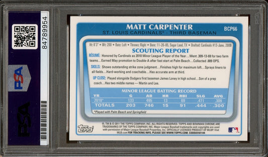Matt Carpenter Signed 2011 Bowman Chrome 1st Bowman #BCP66- Auto Graded Gem Mint 10 (PSA) - Rookie Card