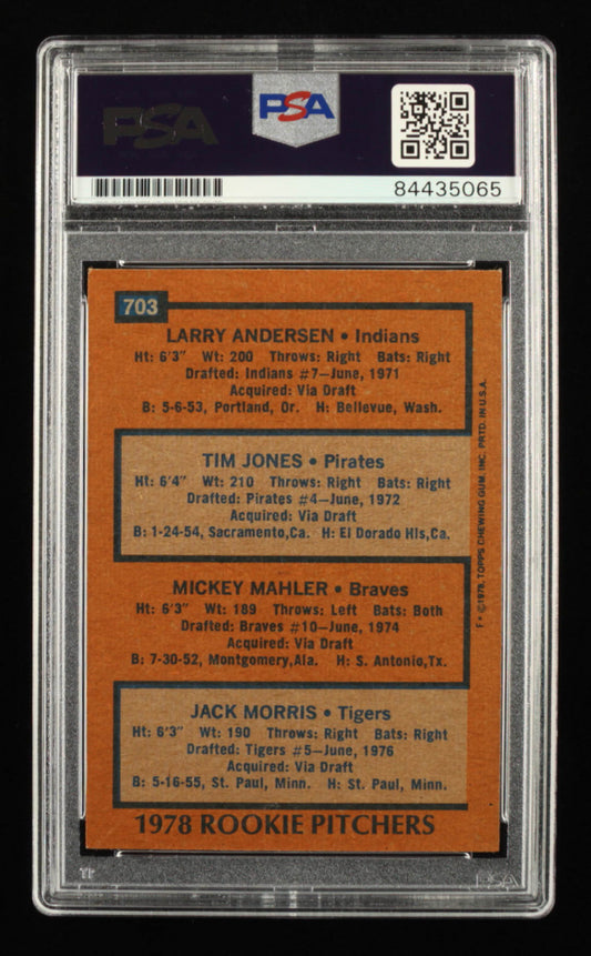 Jack Morris Signed 1978 Topps #703 Rookie Pitchers / Larry Andersen / Tim Jones / Mickey Mahler / Jack Morris DP - Auto Grade PSA 10 - Rookie Card
