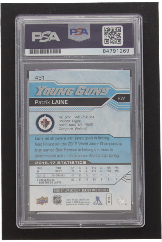 Patrik Laine Singed 2016-17 Upper Deck #451 YG RC (PSA) - Young Guns - Rookie Card