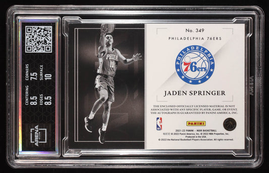 Jaden Springer Signed 2021-22 Panini Noir #349 #99/99 RC (Arena Club 8) Rookie Card | Serially Numbered # 99 / 99 | Auto Grade Arena Club 10