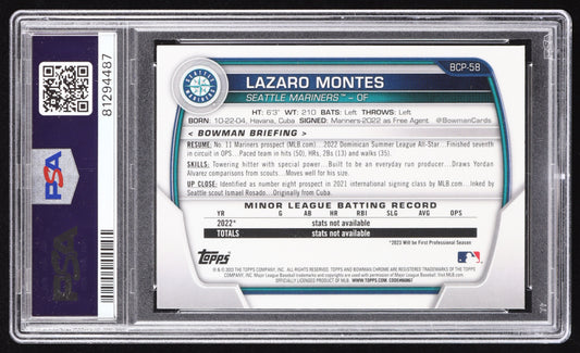 Lazaro Montes Signed 2023 Bowman Chrome Mega Box Prospects #BCP58 RC (PSA 9) Rookie Card