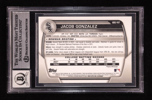 Jacob Gonzalez Signed 2023 Bowman Chrome Draft Green Refractors #BDC167 #40/99 RC (BGS | Auto 10) Rookie Card | Serially Numbered #40 / 99