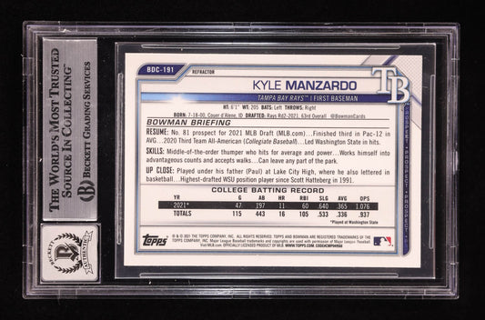 Kyle Manzardo Signed 2021 Bowman Chrome Draft Refractors #BDC191 RC (BGS | Auto 10) Rookie Card
