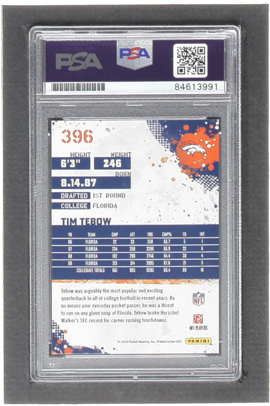 Tim Tebow Signed 2010 Score #396 RC (PSA | Auto Grade 10) - Rookie Card