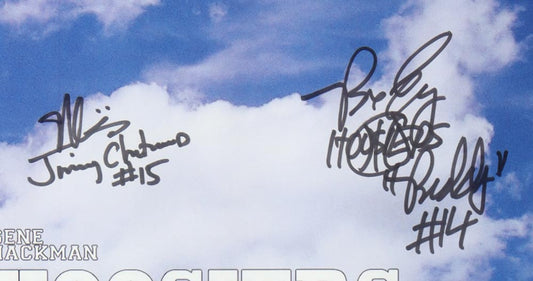 Maris Valainis & Brad Long Signed (JSA) "Hoosiers" Custom Framed Poster Print Display Inscribed 'Hoosiers", "Buddy" & "Jimmy Chitwood" - JSA Witnessed