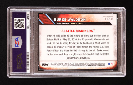 Burke Waldron Signed 2016 Topps Update First Pitch #FP8 (PSA) - WWII Navy Veteran