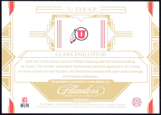 Clark Phillips III 2023 Panini Flawless Collegiate Team Logo Signatures Platinum #TLSCP RC #1/1 - Rookie Card | Serially Numbered #1 / 1