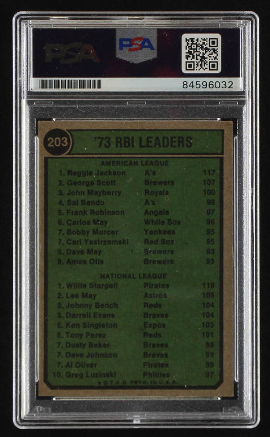 Reggie Jackson Signed Reggie Jackson / Willie Stargell 1974 Topps RBI Leaders #203 - Autograph Graded PSA 10
