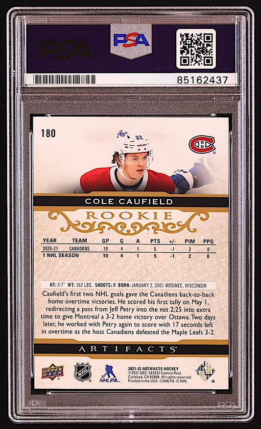 Cole Caufield Signed 2021-22 Artifacts #180 RC (PSA) Rookie Card