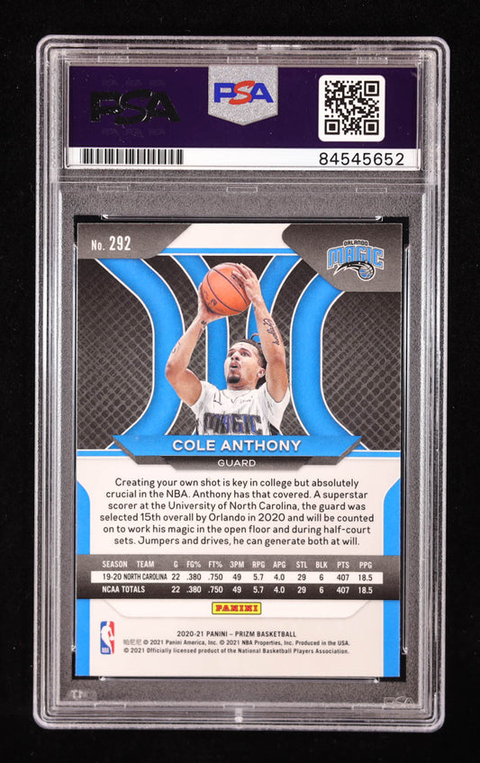 Cole Anthony Signed 2020-21 Panini Prizm Prizms Silver #292 RC (PSA | Auto 10) Rookie Card