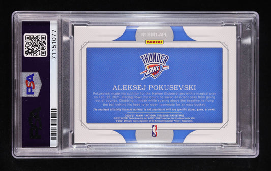 Aleksej Pokusevski Signed 2020-21 Panini National Treasures Rookie Materials Prime #18 #01/25 RC (PSA | Auto Grade PSA 10) Autograph Graded PSA 10 | Rookie Card | Serially Numbered #01 / 25