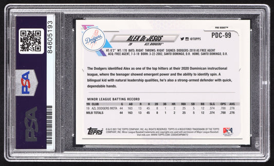 Alex De Jesus Signed 2021 Topps Pro Debut Chrome #PDC99 RC (PSA | Autograph Graded PSA 10) Rookie Card