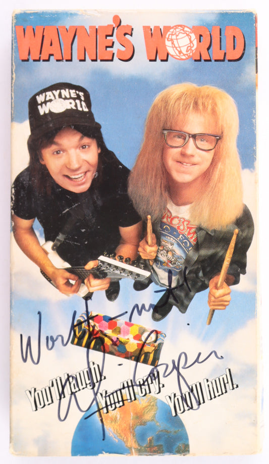 Alice Cooper Signed (Beckett) 1992 "Wayne's World" VHS Tape Inscribed "Worthy-Not!" - Beckett Witnessed