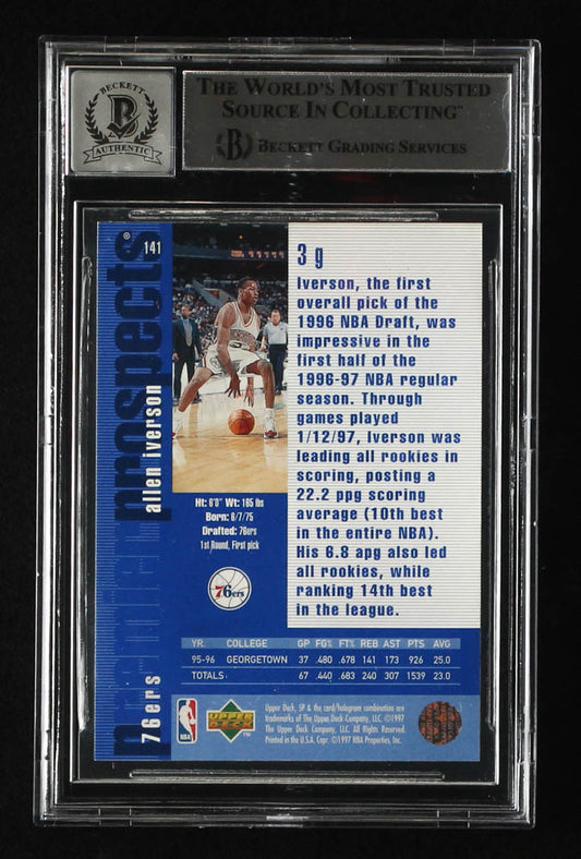 Allen Iverson Signed 1996-97 SP #141 RC Autograph Graded Beckett 10 - Rookie Card