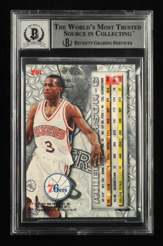 Allen Iverson Signed 1996-97 Metal #201 - Rookie Card - Autograph Graded Beckett (BGS) 10