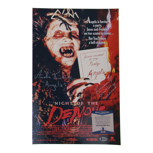 Amelia Kinkade & Linnea Quigley Signed (Beckett) "Night of the Demons" 11x17 Photo Inscribed "Angela" & "Suzanne"