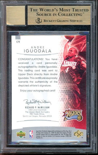 Andre Iguodala 2004 SP Authentic Autographed #179- Graded Gem Mint 9.5 (BGS) - Auto Graded Gem Mint 10 (BGS) - Rookie Card